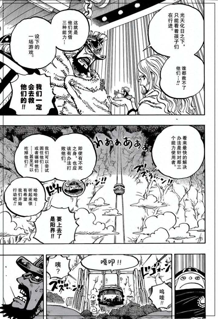 海贼王漫画剧情正在更新中,草帽一伙来到艾尔巴夫冒险,他们和巨人族战士一起开宴会庆祝。草帽一伙除了罗宾,乔巴,弗兰奇等人没有参加宴会,其他人都过来开宴会了。亚鲁鲁长老也出来参加宴会,他是巨人族的掌控者,哈拉尔德国王死后,巨人族没有国王了。